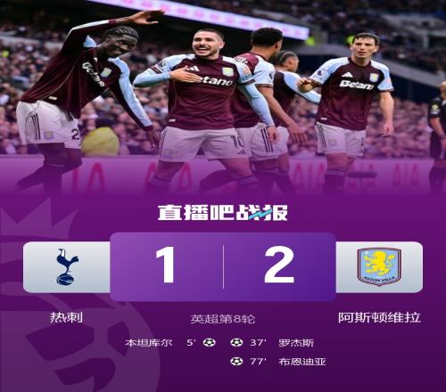 热刺近4轮仅获1胜,维拉各项赛事5连胜;罗杰斯世界波,布恩迪亚、本坦库尔建功。